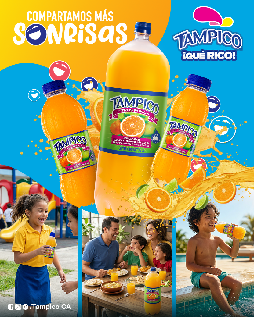 Tampico es la marca número uno de bebidas refrescantes en Guatemala, con presencia en más de 60 países alrededor del mundo. No podrás resistir su rico sabor de mezcla de frutas: naranja, mandarina y limón o Tropical Punch. Tampico, ¡qué rico!